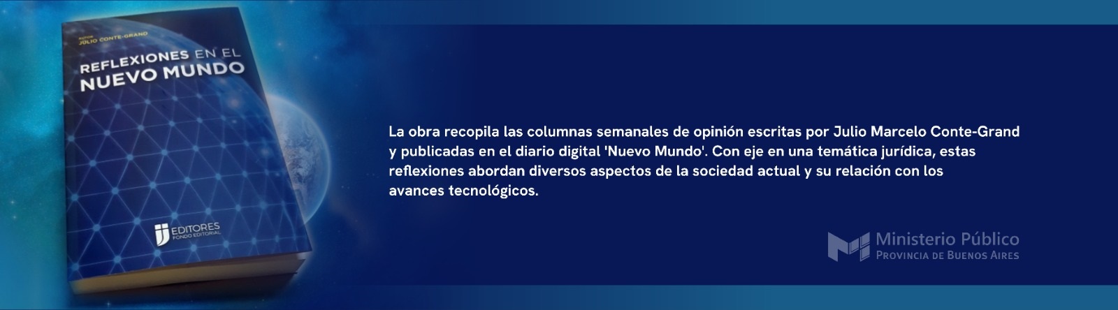 La obra producida por IJ Editores, recopila las columnas semanales de opinión escritas por el Dr.Julio Conte-Grand y publicadas en el diario digital 'Nuevo Mundo'.