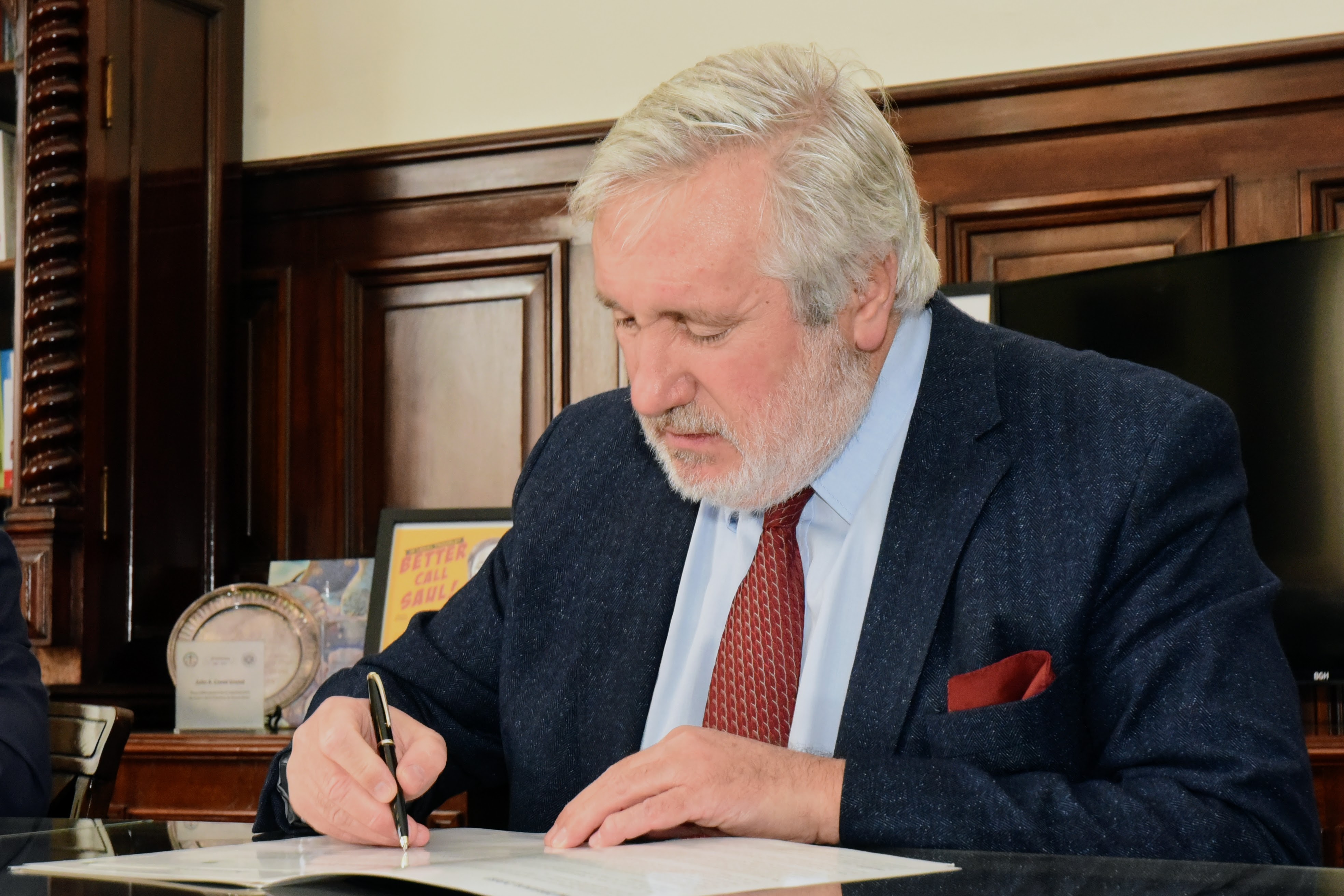 El Procurador General, Dr. Julio Conte-Grand, y el intendente de la Municipalidad de Ituzaingó, Pablo Catriel Descalzo, firmaron un convenio de colaboración.