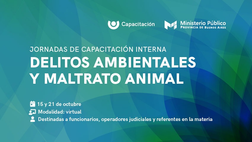 Los días 15 y 21 de octubre se llevará adelante una actividad de capacitación sobre “Delitos ambientales y maltrato animal”, destinada a funcionarios, operadores judiciales y referentes en la materia.