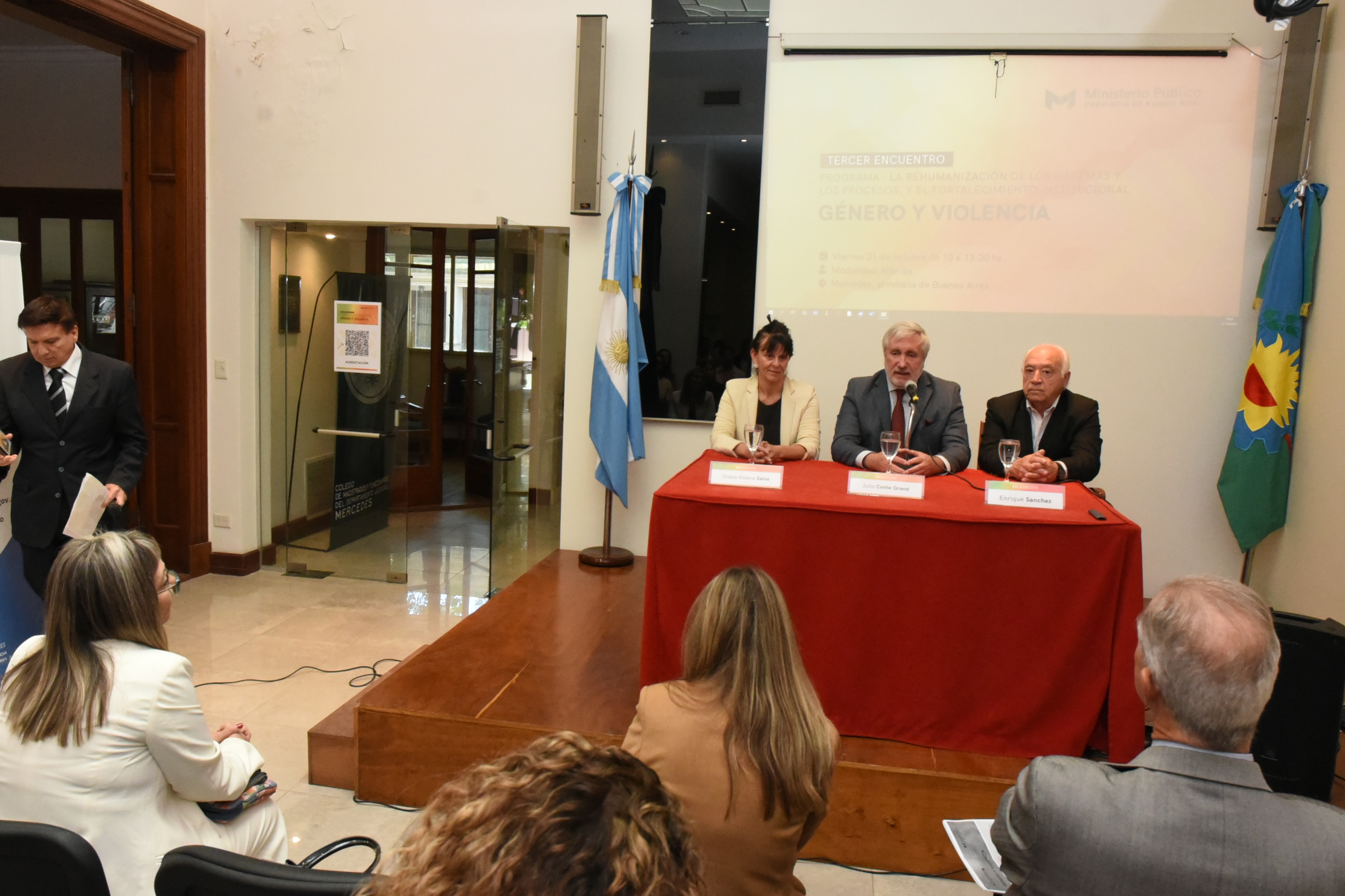 La apertura del encuentro estuvo a cargo del Procurador General, Dr. Julio Conte-Grand; de la Presidenta del Colegio de Magistrados y Funcionarios de Mercedes, Dra. Gisela Aldana Selva y del Presidente del Colegio de Abogados, Dr. Hernán Alberto Salaverri.