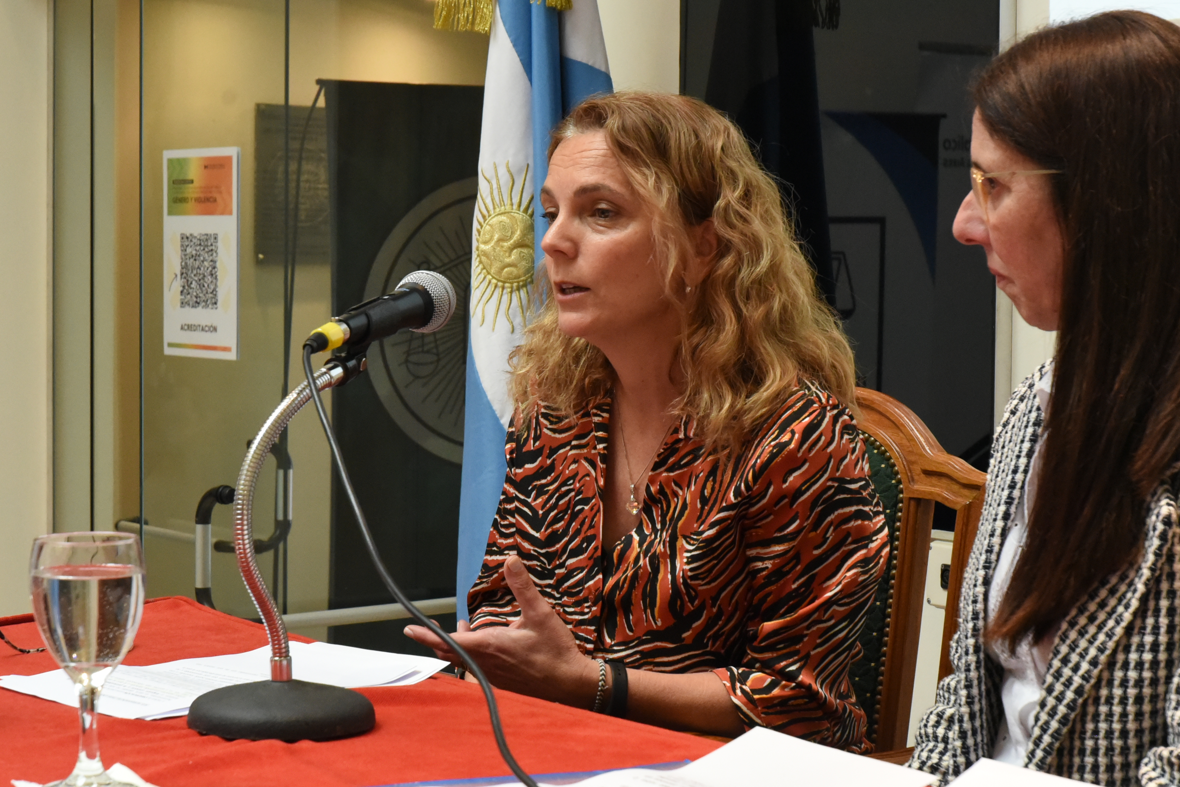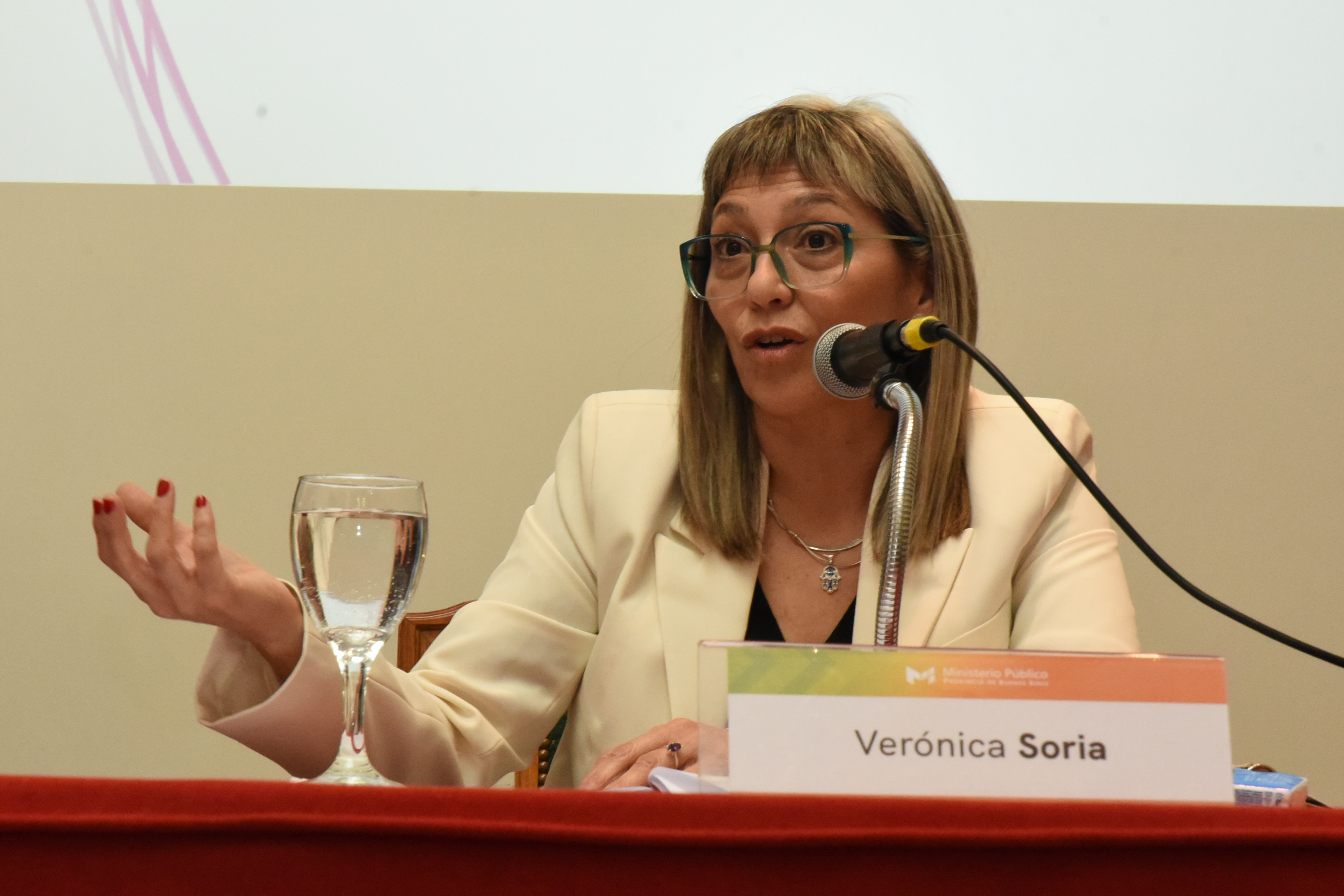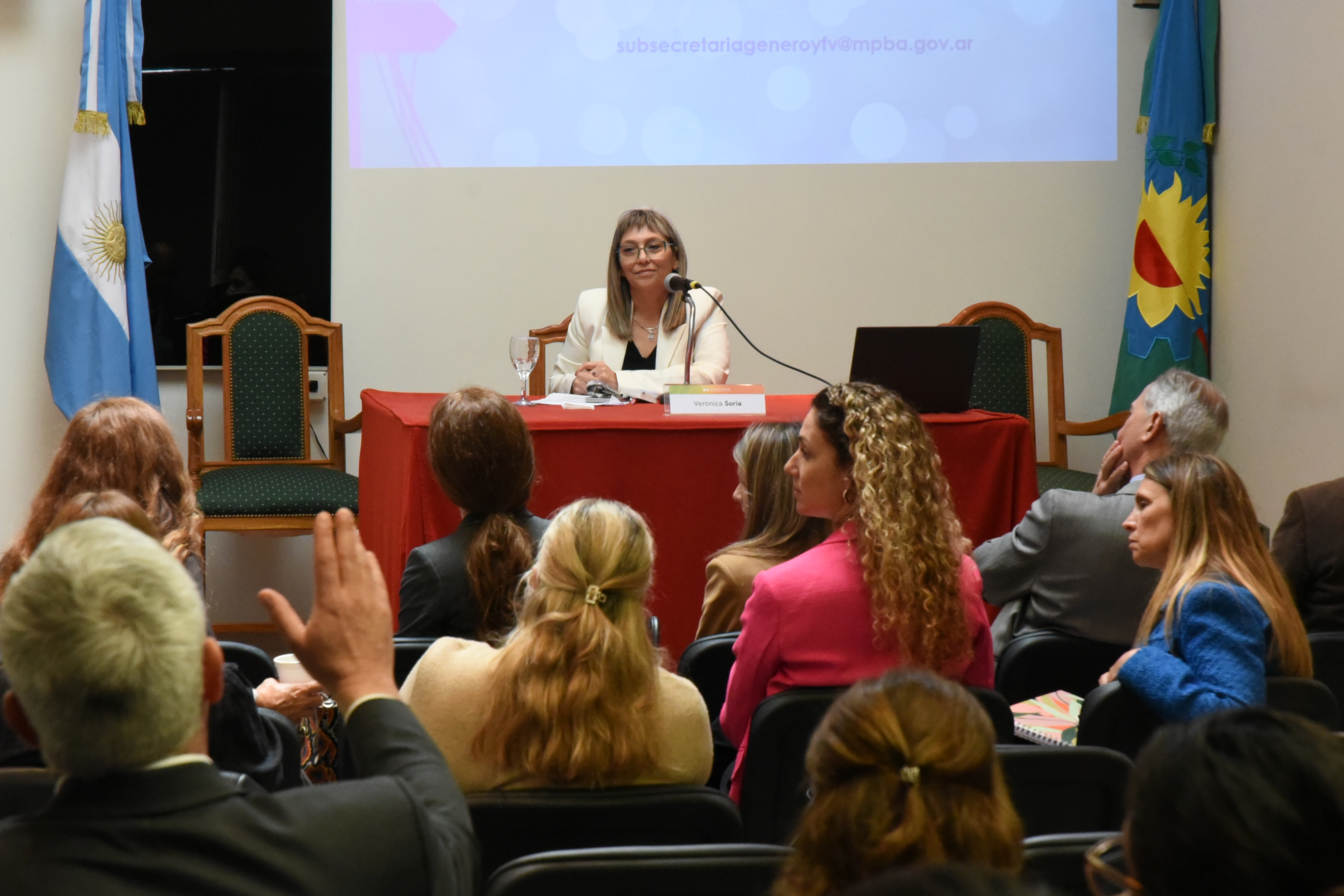 Durante la jornada, disertó la Dra. Verónica Soria, de la Subsecretaría de Políticas de Género y Violencia Familiar del MPBA, sobre “Lineamientos de gestión para una justicia con perspectiva de género”.