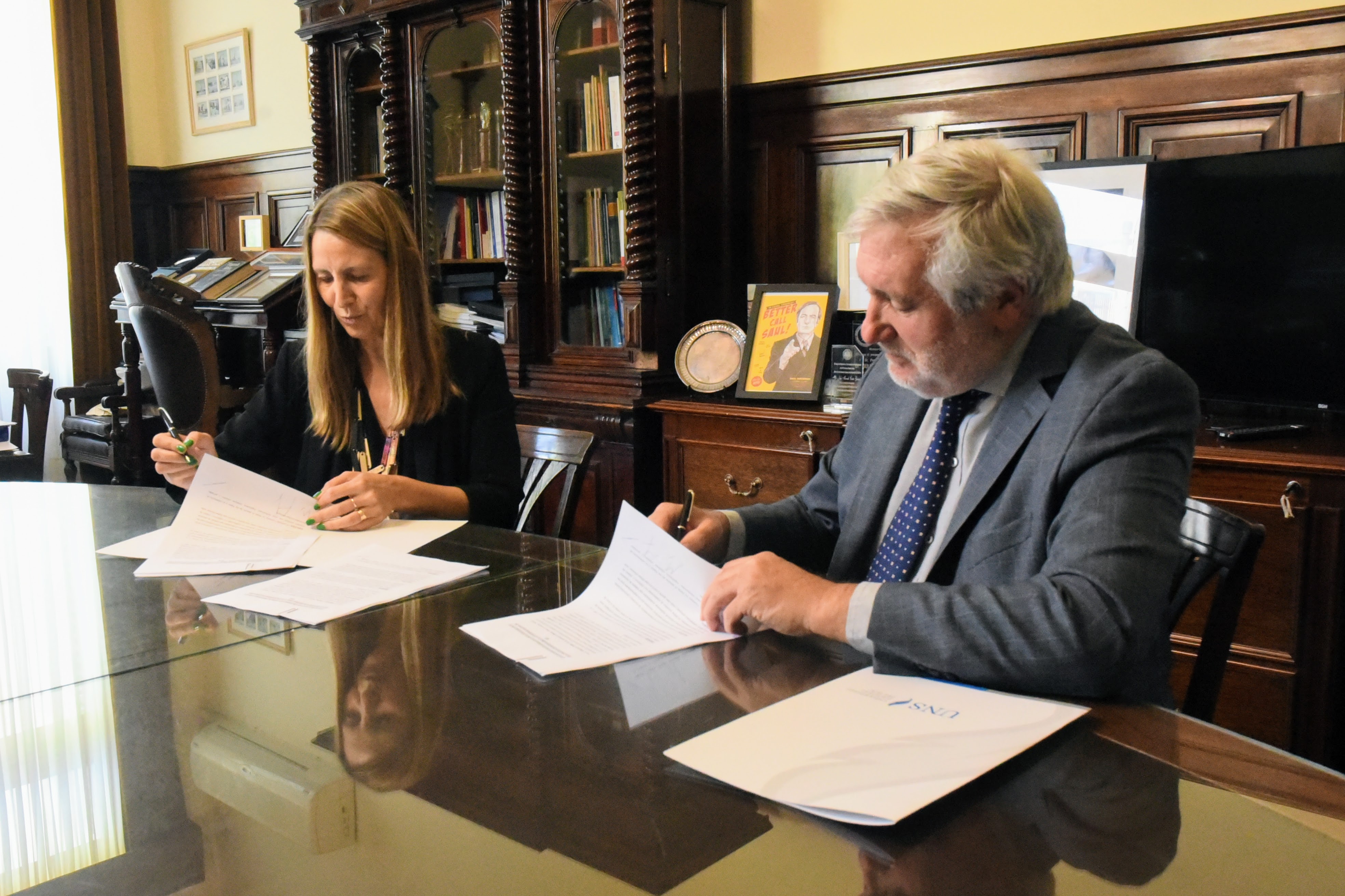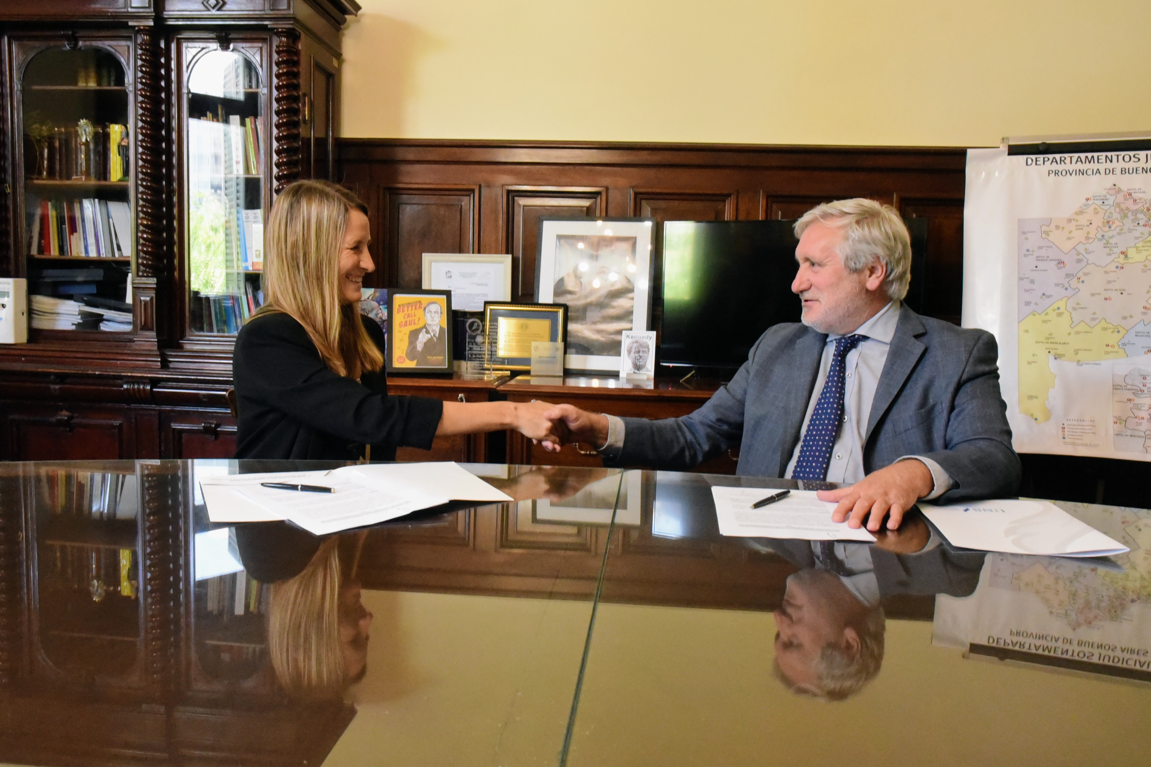 El Procurador General de la provincia de Buenos Aires, Dr. Julio Conte-Grand, suscribió un Convenio Marco de Colaboración con la Universidad Nacional del Sur (UNS), representada por el Sr. Rector, Dr. Daniel Alberto Vega, y por la Dra. Carina Pamela Tolosa, Directora del Centro de Investigaciones Forenses y Directora Decana del Departamento de Derecho de la UNS.