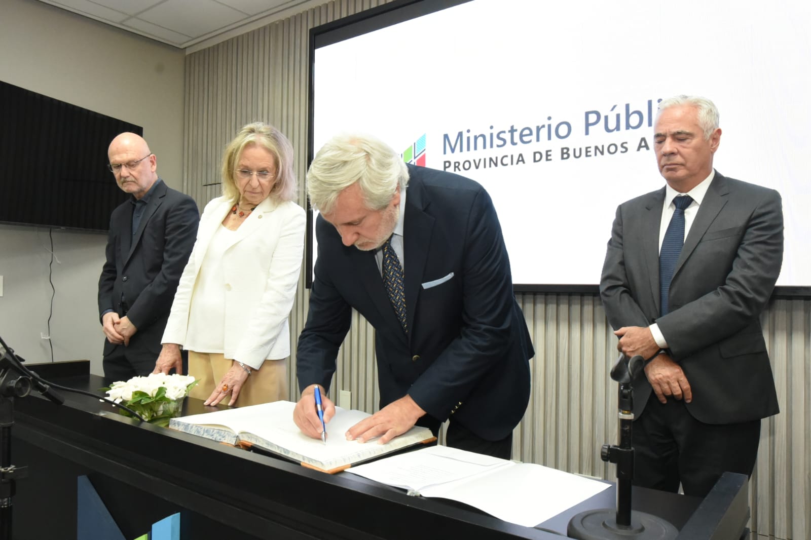 También estuvieron presentes el señor Ministro de Justicia y Derechos Humanos de la provincia de Buenos Aires, Dr. Juan Martín Mena; la fiscal de Casación, Dra. Daniela Bersi; fiscales de Cámara, seretarios y subsecretarios de la Procuración General, entre otros funcionarios, familiares y amigos.