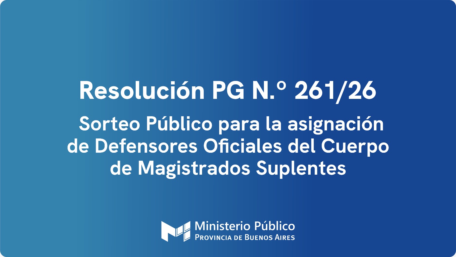 El próximo 18 de marzo se efectuará el sorteo público para la asignación de funciones como Defensores Oficiales del Cuerpo de Magistrados Suplentes, conforme el Art. 1° de la Resolución PG N.º 261-26.