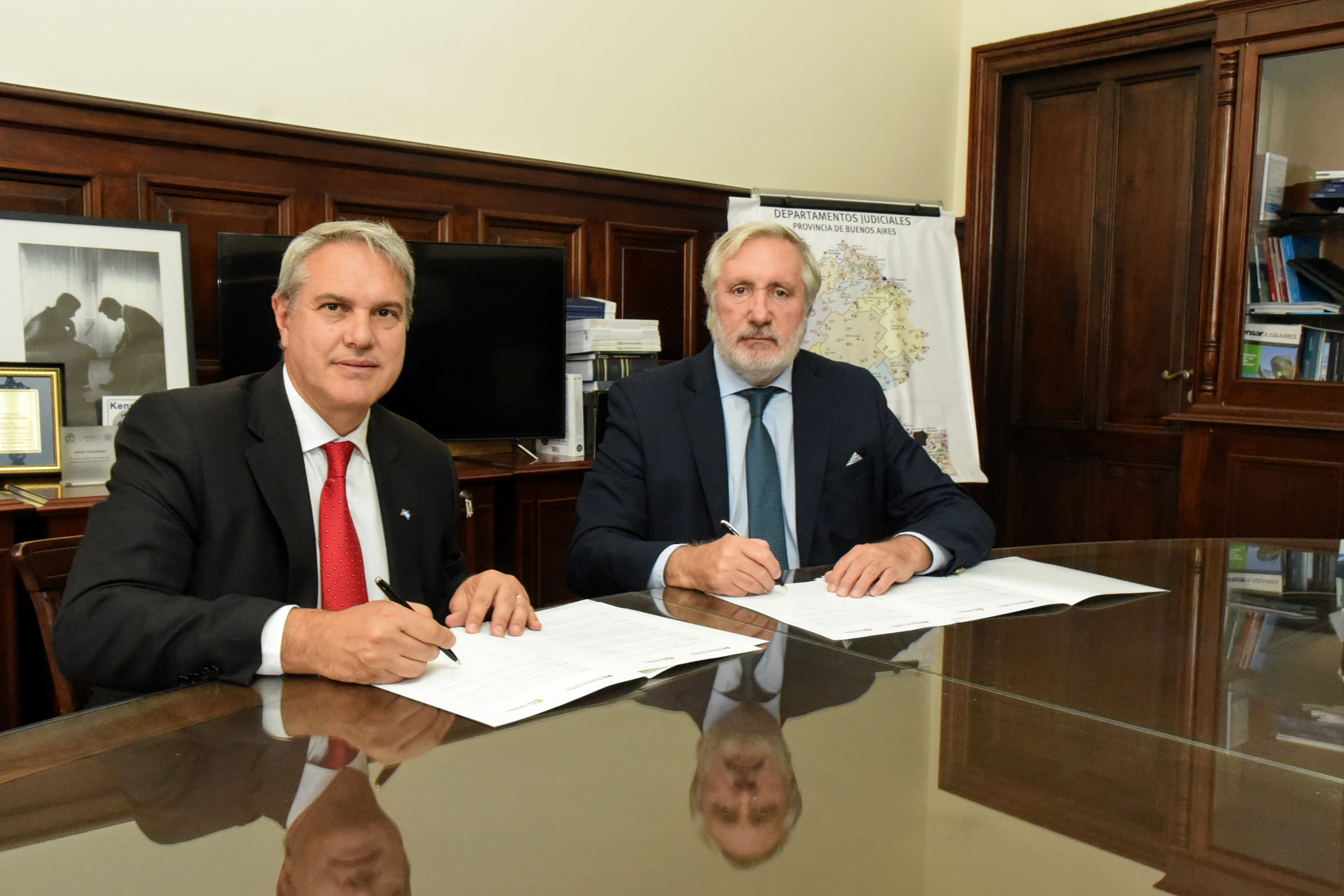El Procurador General, Dr. Julio Conte-Grand, y el Intendente de la Municipalidad de Chacabuco, Dr. Rubén Darío Golía, suscribieron un convenio específico en el marco del Convenio Marco de Colaboración del año 2005.