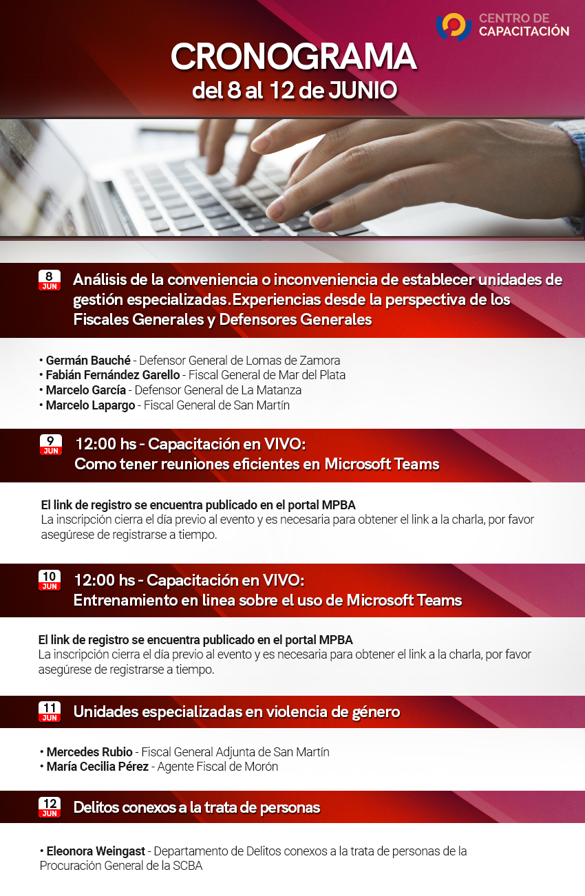 Puede encontrar los enlaces de registro para las capacitaciones de Microsoft teams clickeando aquí.