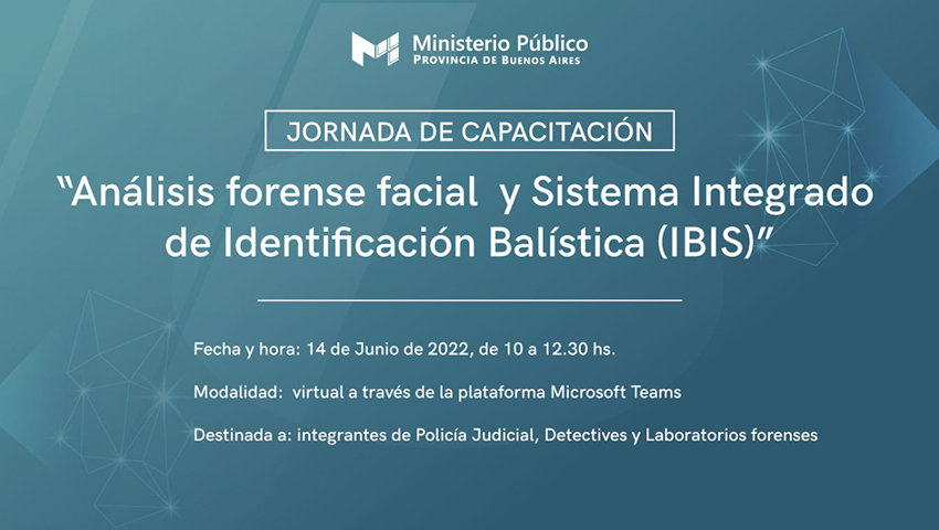 El próximo 14 de junio, por la mañana se llevará a cabo una jornada de capacitación virtual sobre "Análisis forense facial y Sistema Integrado de Identificación Balística o IBIS", organizada por la Secretaría de Política Criminal, Coordinación Fiscal e Instrucción Penal, la Dirección General de Policía Judicial y la asistencia del Centro de Capacitación.