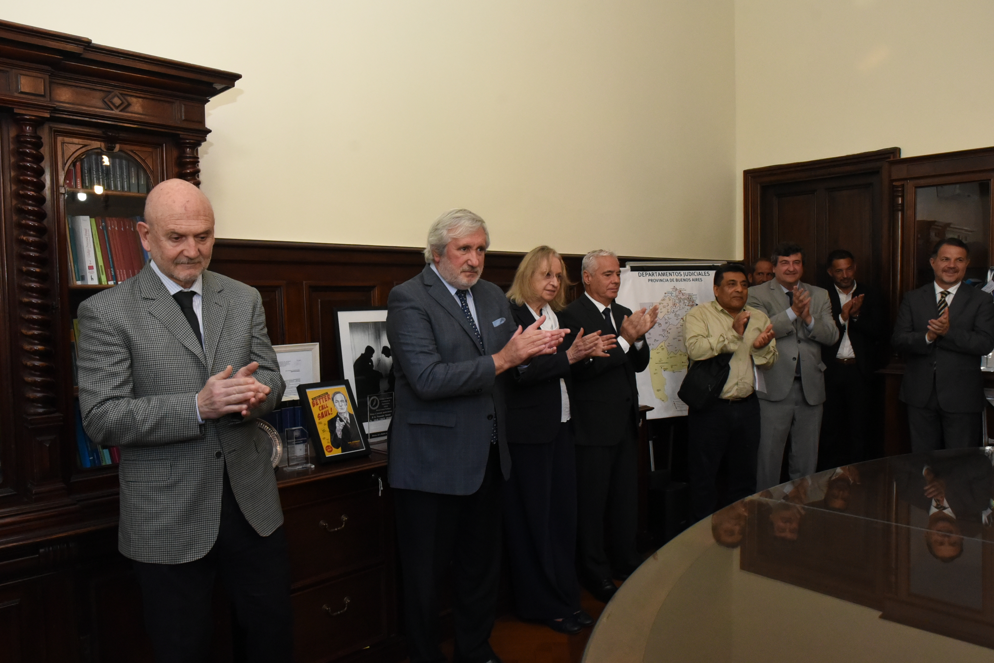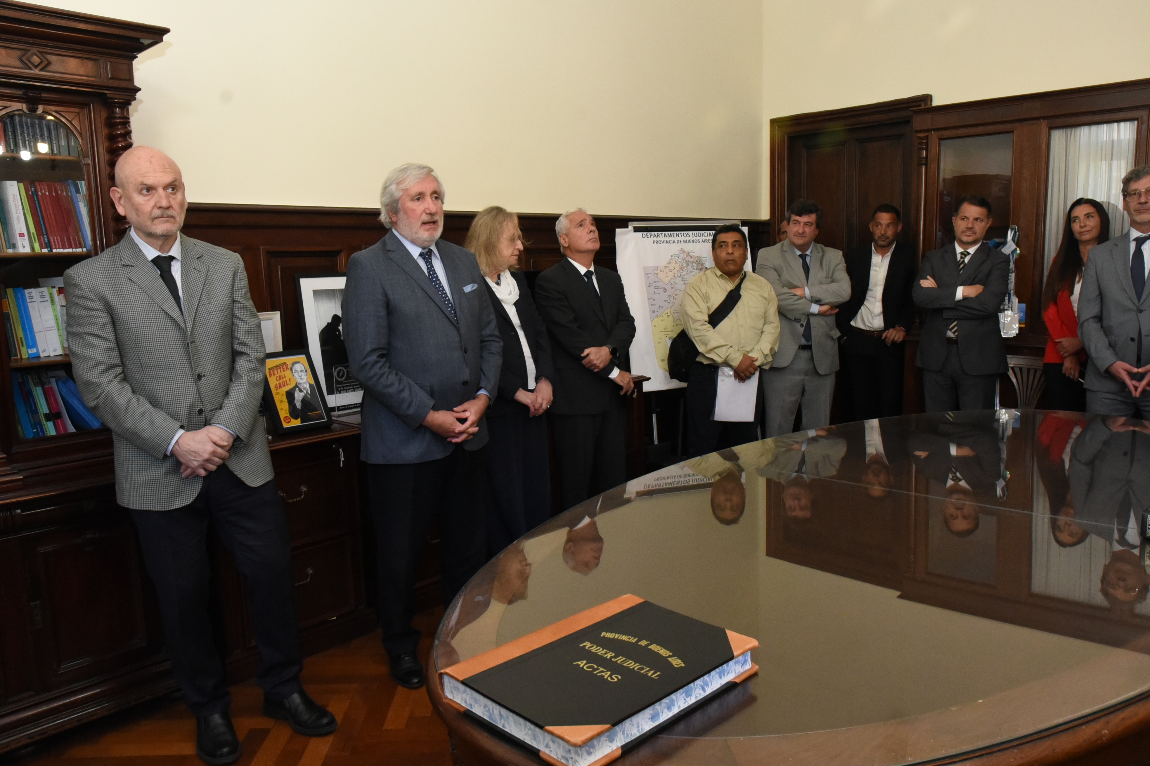 El acto fue presidido conjuntamente por el Procurador General Dr. Julio Conte-Grand, y la señora Presidente de la Suprema Corte de Justicia de la provincia de Buenos Aires, Dra. Hilda Kogan; acompañados por el señor Vicepresidente de la SCBA, Dr. Gabriel Torres, y el Ministro Decano, Dr. Daniel Soria.